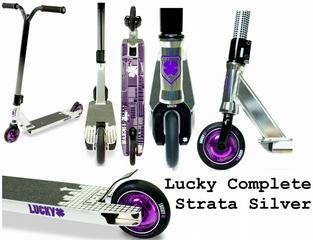 Los 2012 Strata Lucky es una mejora seria de la tripulación. Está optimizado para la velocidad y la maniobrabilidad - perfecta para riders de nivel intermedio y experto que buscan mostrar sus habilidades en las aceras del vecindario o el parque scooter. Con la nueva mociones cubierta Lucky con un auricular integrado, horquillas SMX Lucky y 110mm ruedas Icono Lucky, el Strata es el indiscutible mejor "banger-para-su-buck". El diseño Strata se inspiró en el trazado de las calles de Seattle, Washington, que se basa en una serie de redes de calles rectangulares.